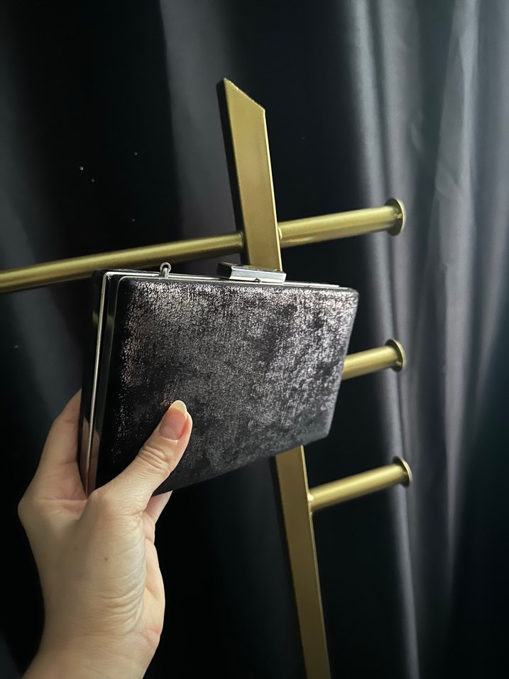 Tokalı kapama ve baskılı dokusuyla koyu metalden yapılmış, çağdaş ve avangart tarza sahip kadın portföy çanta. Günlük kullanıma uygun.