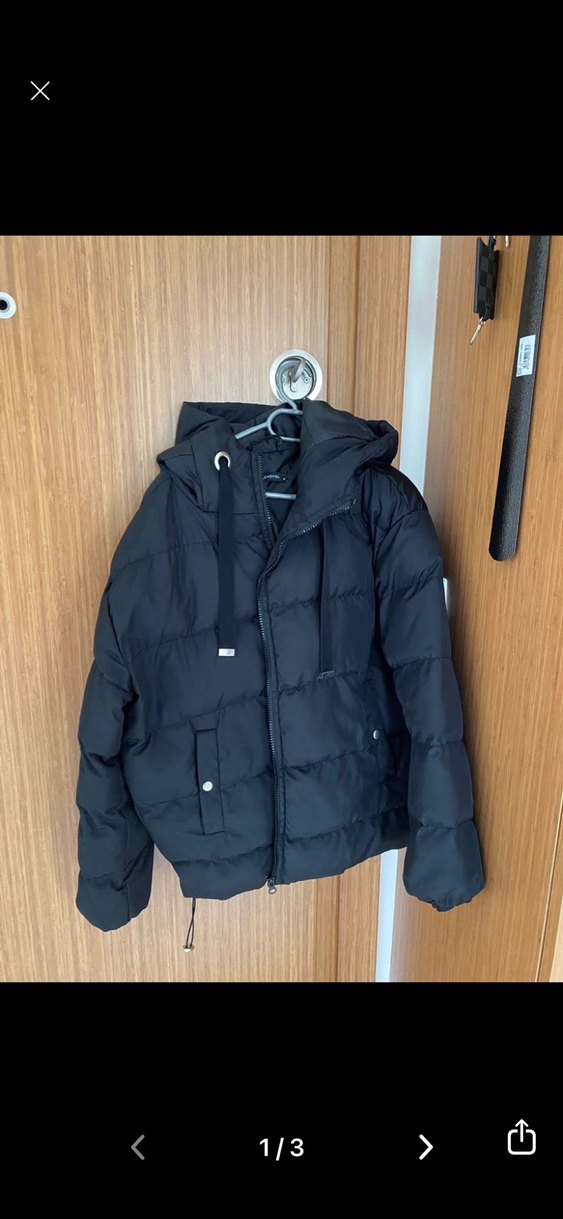 Tokalı detaylı, notched lapel yaka ve askılı kollu siyah, yumuşak kumaştan midi uzunlukta kadın kışlık mont. Günlük rahat kullanıma uygun.