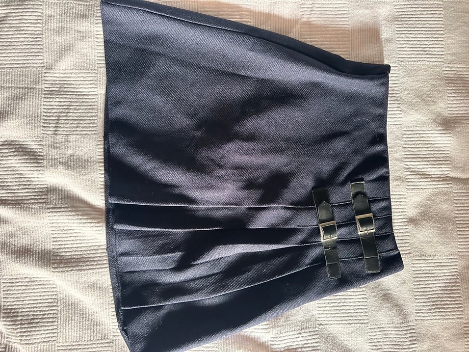 Tokalı detaylı, siyah, sentetik kumaştan yapılmış, midi boy goth mini etek. Ofis kullanımı için uygun, dar kesim.
