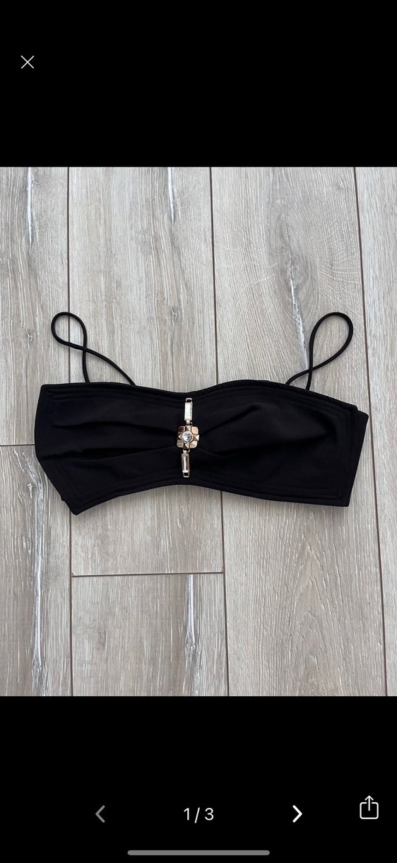 Tokalı detaylı, ince askılı, siyah mini büstiyer üstü. Minimalist goth tarzını yansıtan cesur ve şık tasarım. taşlı büstiyer 2 kere giyildi mini ve sağ tarafı daha uzun, şık bir parça. trendyoldan alındı