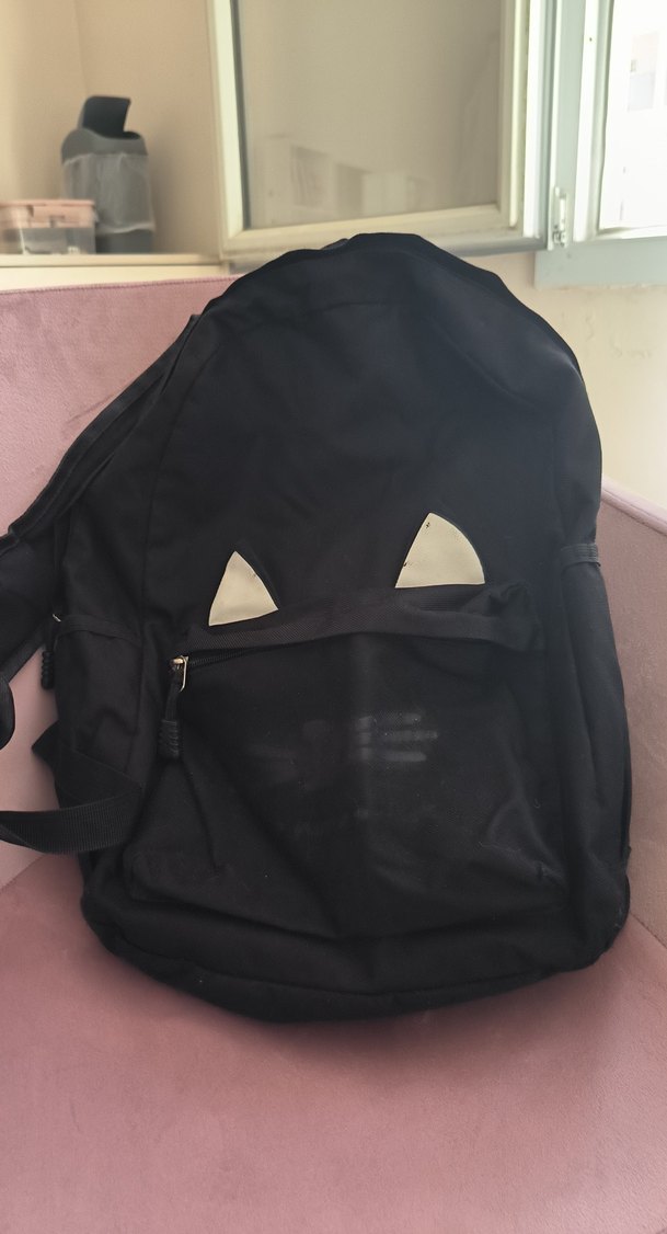 Tokalı kayışlara sahip siyah minimalist sırt çantası, dayanıklı plastikten üretilmiştir. Günlük kullanım için uygun sade tasarımı, gotik ve rock punk havası yansıtıyor.