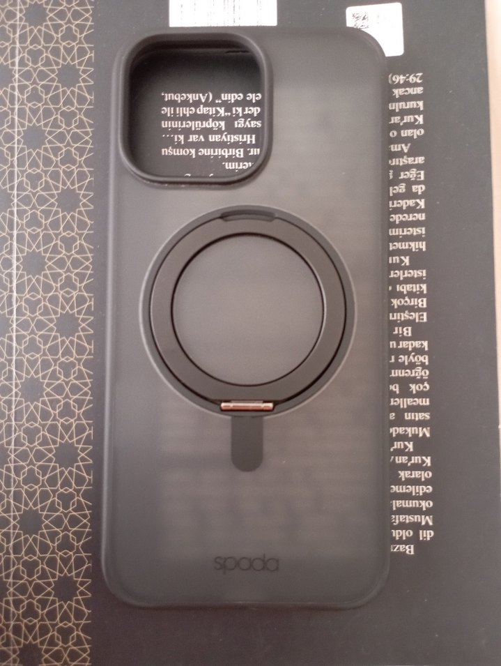 hiç kullanılmadı iPhone 16 pro max Tokalı tasarıma sahip siyah normcore telefon kılıfı, kolay tutuş için halka tutucu içerir.