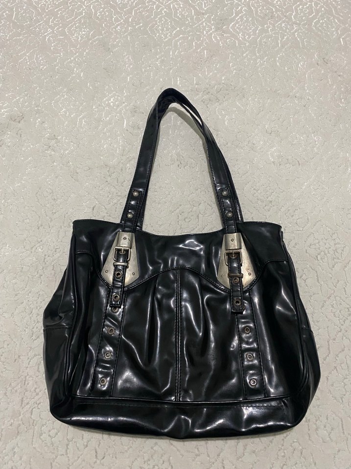 Tokalı Siyah Parlak Gotik Çanta