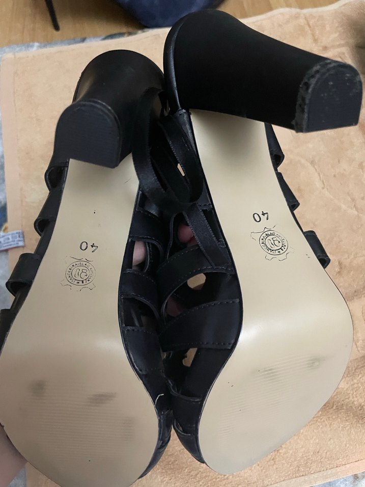 Tokalı detaylara sahip siyah platform topuklu ayakkabı, kauçuk tabanlı ve gotik desenli tarzda. Romantik akşamlar için uygun. 40 numara. İade kabul edemiyorum yeniden farksız. 39 daha iyi olur.