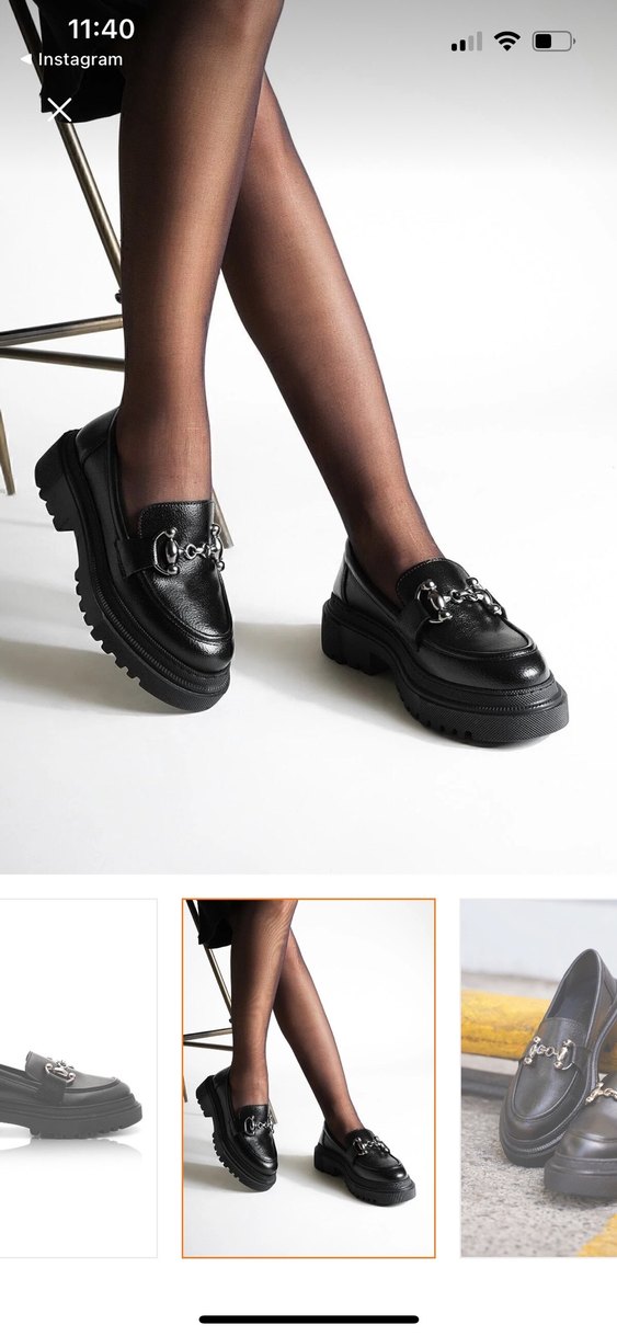 Siyah parlak rugan malzemeden yapılmış, tokalı detaylı ve yılan derisi desenli platform topuklu kadın loafer ayakkabı, ofis kullanımı için uygundur.