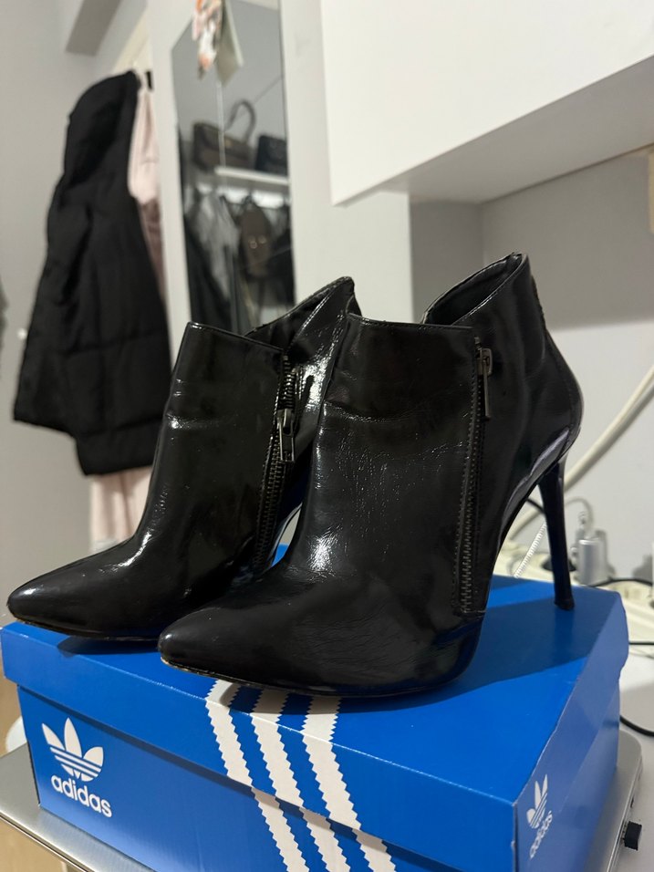 Tokalı Siyah Rugan Stiletto Kadın Bot
