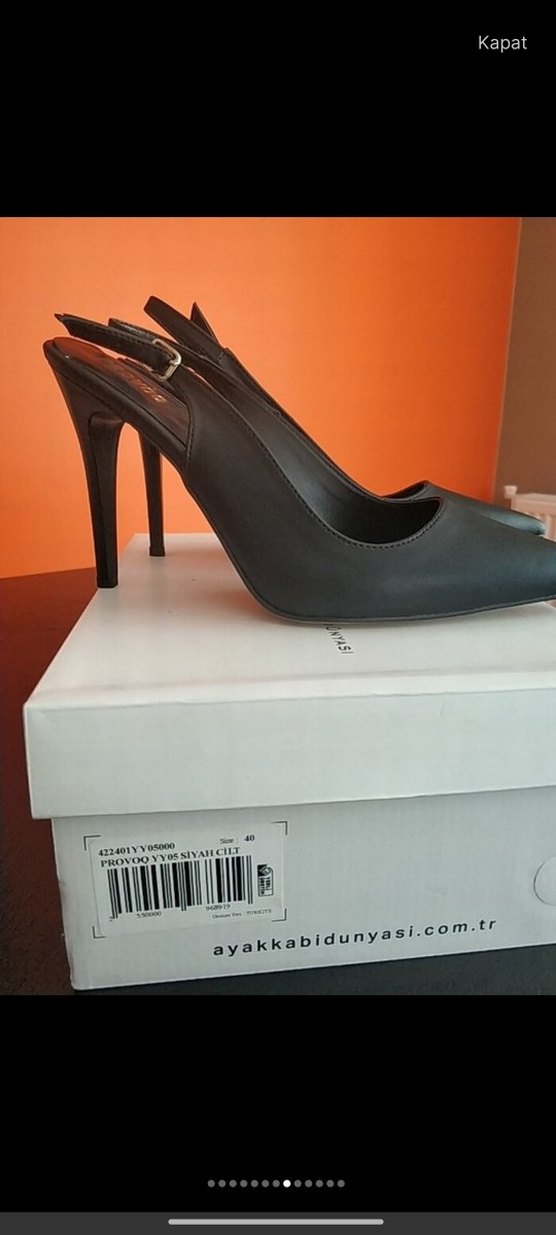 40 numara 39 giyene rahatlikla olur Tokalı bantlı, baskılı detaylı siyah kadın stiletto ayakkabı. Yüksek stilettosu ile romantik akşamlar için uygun. ayakkabidunyasi.com.tr'den.