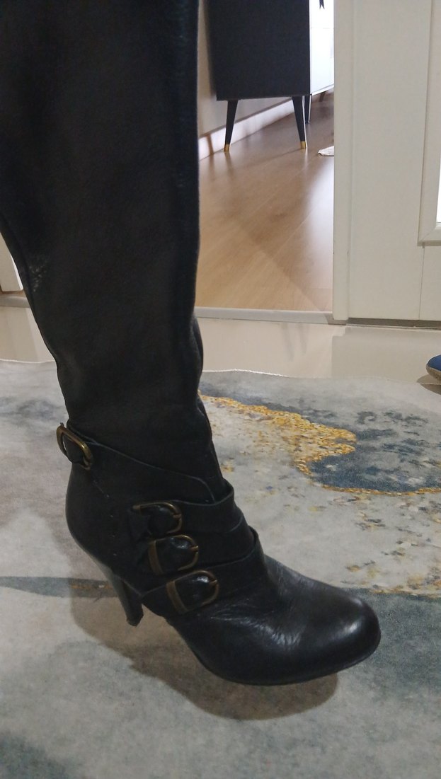 Tokalı Siyah Süet Dizüstü Topuklu Bot - Görsel 4