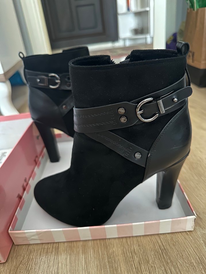 Tokalı Siyah Süet Yüksek Topuklu Bot