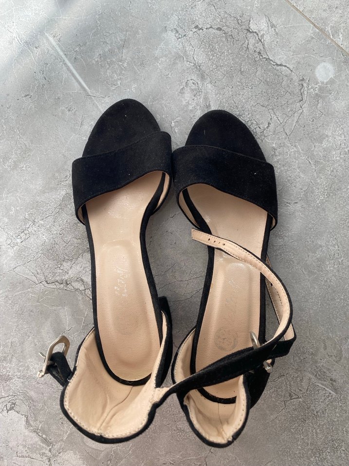 Tokalı kayışlı siyah stiletto topuklu kadın ayakkabısı, minimalist ve gotik tarzda, günlük kullanıma uygun kauçuk malzemeden yapılmıştır.