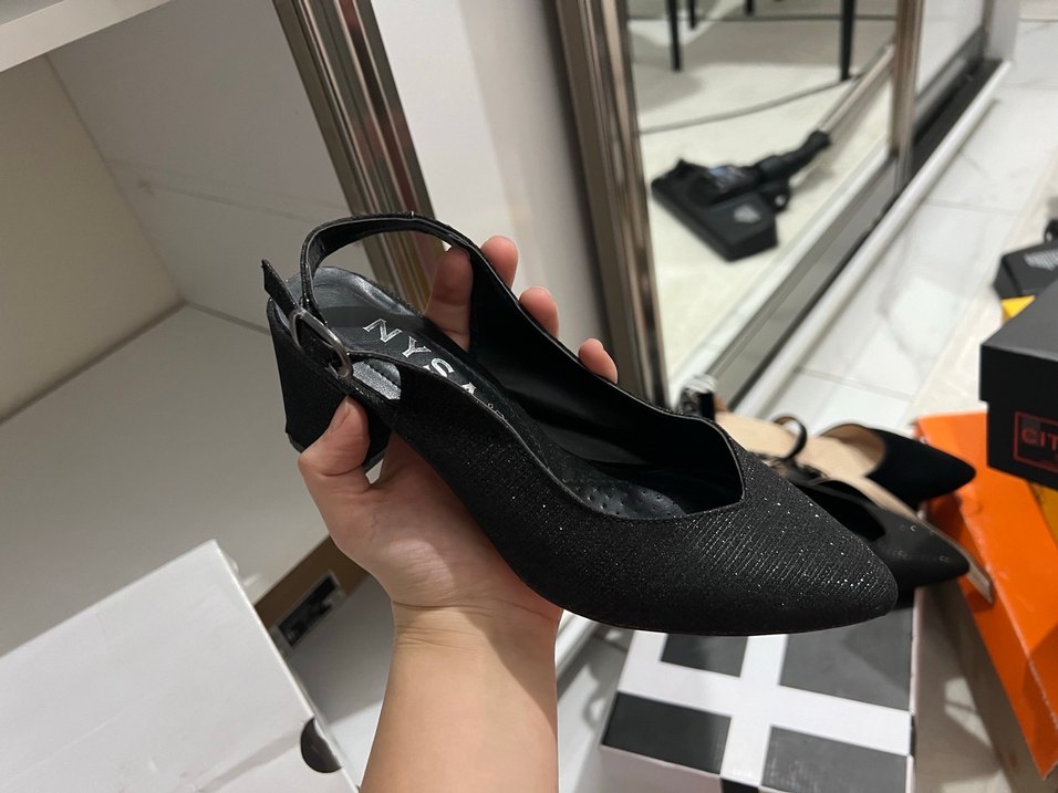 Tokalı Siyah Topuklu Kadın Ayakkabı