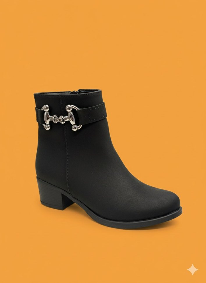 Tokalı Siyah Yılan Desenli Kadın Bot