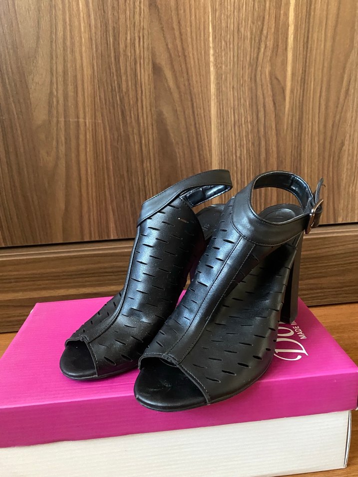 Tokalı, desenli siyah yüksek topuklu kadın abiye ayakkabılar, cesur ve modern bir tarz sunar. Romantik akşamlar için uygundur.