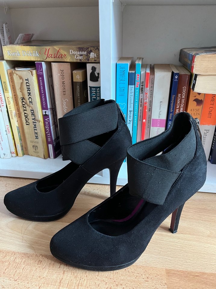 Tokalı Siyah Yüksek Topuklu Kadın Ayakkabı