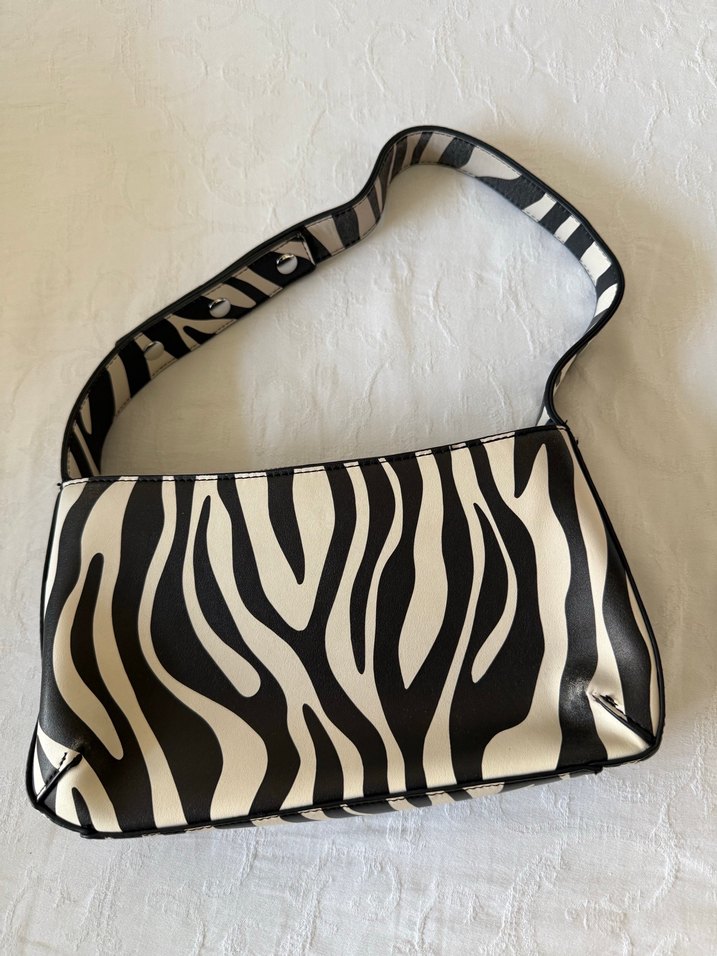 Tokalı Zebra Desenli Deri Kadın Çanta