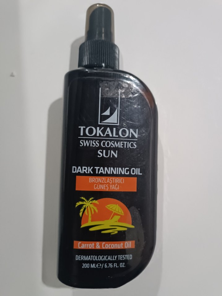 Tokalon Dark Tanning Oil, havuç ve hindistancevizi yağı içerir. Dermatolojik olarak test edilmiştir ve bronzlaşmayı destekler. 200 ml sprey şişede sunulur.