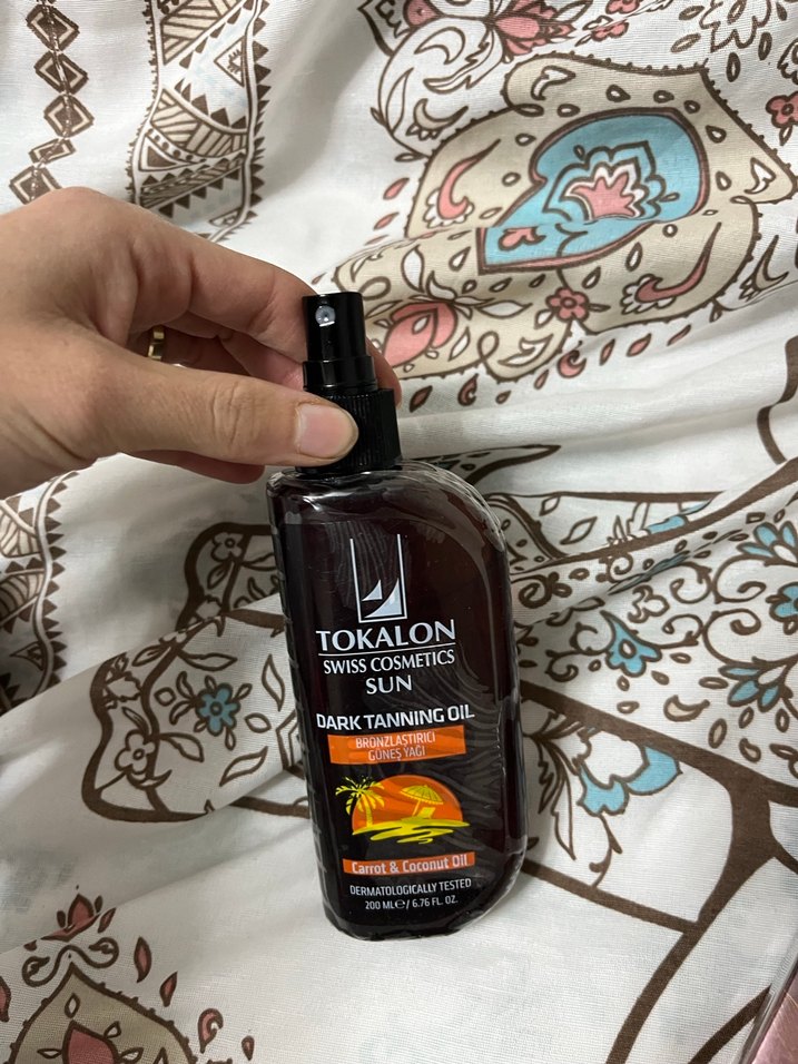 Tokalon Koyu Bronzlaşma Yağı, havuç ve hindistancevizi yağı ile cildi koruyarak derin bronzluk sağlar. Dermatolojik olarak test edilmiştir, sprey şişede kolay uygulanır. Sadece kapağı kayıp etiketli yeni ürün