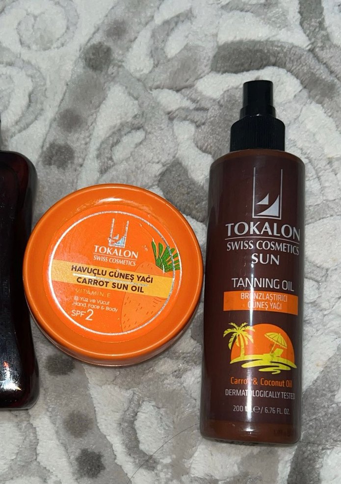 Tokalon markasına ait SPF 2 korumalı havuçlu güneş yağı ve havuç ile hindistancevizi içeren dermatolojik olarak test edilmiş bronzlaştırıcı güneş yağı.