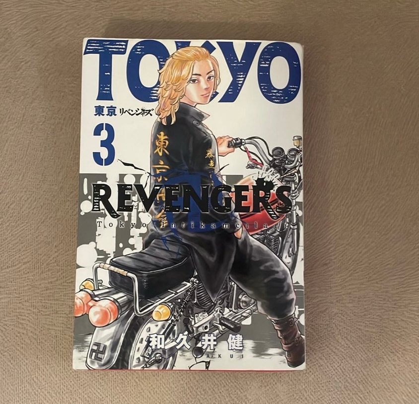 Tokyo Revengers manga serisi 3. cilt, genç bir çete üyesinin hikayesini detaylı çizimlerle anlatır. Kapağında siyah ceketiyle motosiklet üzerinde bir karakter bulunur. ️