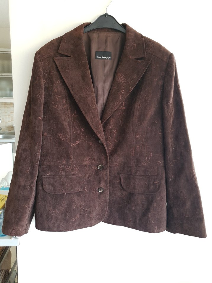 Tolga Saraçoğlu marka 46 beden süet kadın ceket. Acı kahve renkte, üzerinde işlemeleri vardır. söküğü defosu yoktur. İçi astarlı. Kollarında 3 düğme detayı var görsellere ekledim. önleri cepli fakat dikişlidir. omuzlarında içerden kendinden vatkası var. çok az kullanıldı. %100 polyester kumaş. ceket uzunluk ölçüsü 72cm