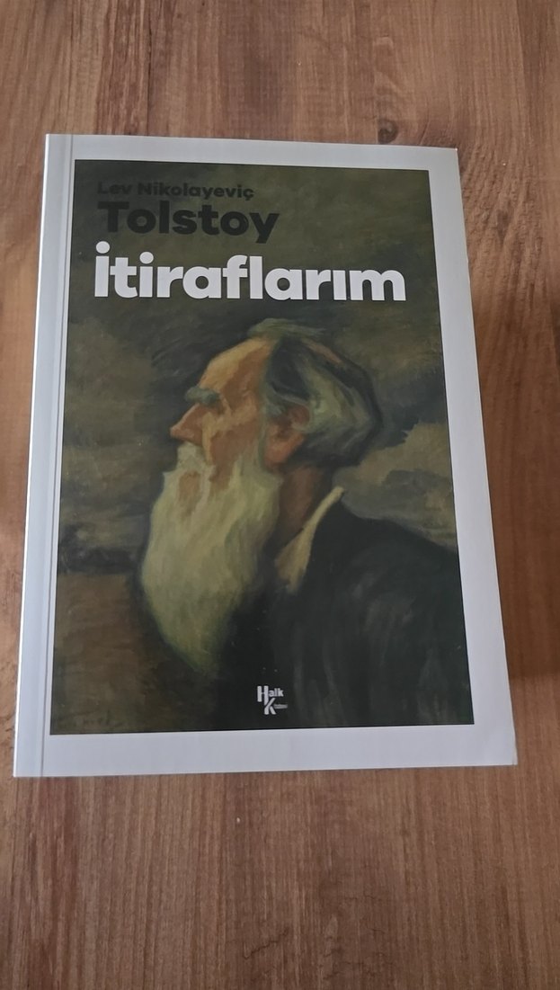 Tolstoy'un "İtiraflarım" adlı romanı, derin kişisel düşünceler ve felsefi içgörüler içerir. Kapakta Tolstoy'un resmedildiği bir portre yer alır.