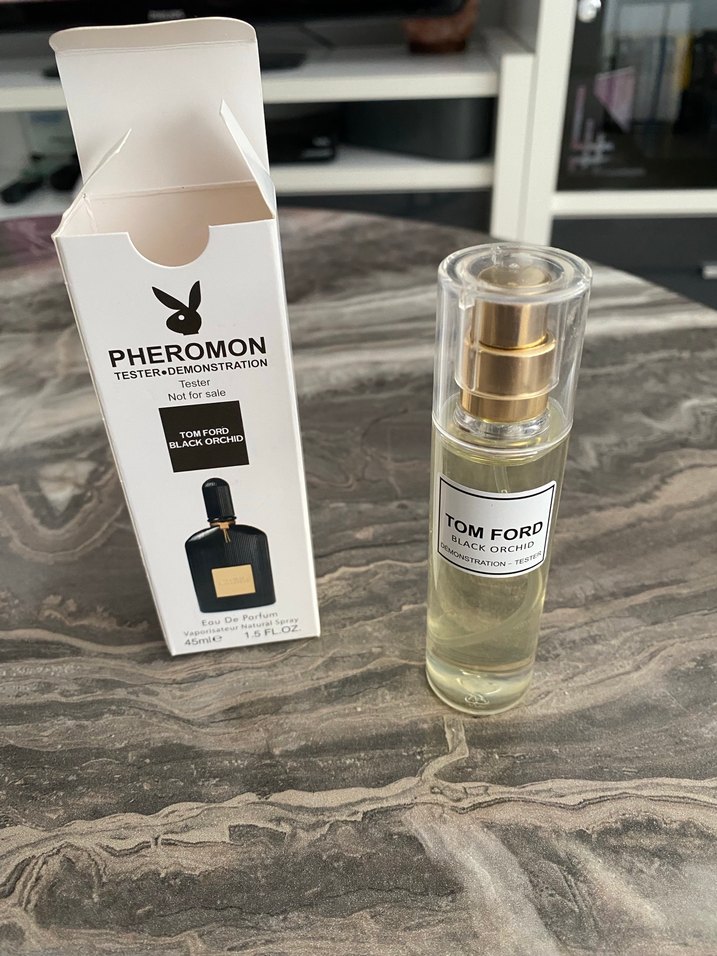 Tom Ford Black Orchid kadın parfümü, 45 ml sprey şişede. Üzerinde PHEROMON ve FORO yazıları bulunan tester versiyon.
