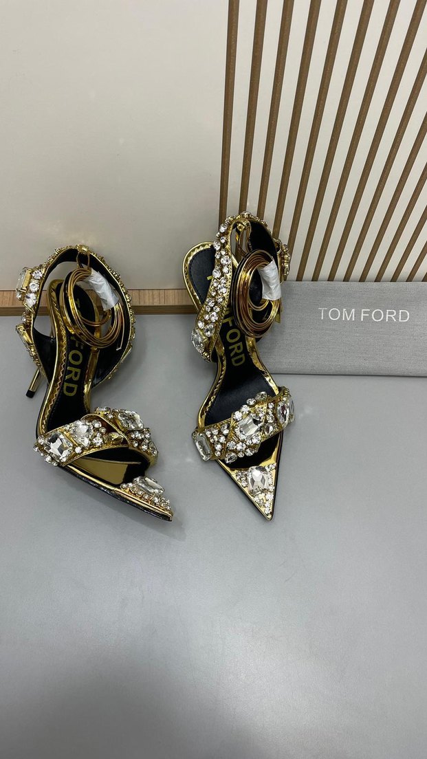 Tom Ford kadın ayakkabılar, parlak altın payetler ve ince topuklu tasarımıyla klasik zarafeti çağdaş stil ile buluşturuyor. Düğün ve özel günler için şık seçim.