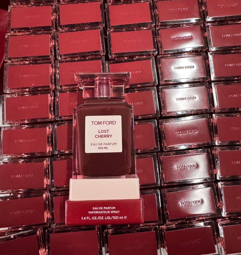 Tom Ford Lost Cherry, 100ml eau de parfum, yoğun kiraz kokusuyla derin kırmızı şişede sunuluyor.