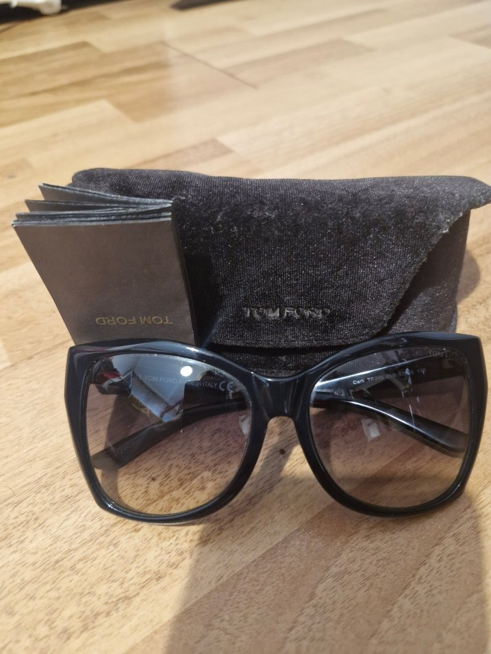 Tom Ford markalı, parlak siyah renkte modern klasik tarzda kadın güneş gözlüğü ve koruyucu kılıf içerir. ️Urun neredeyse hic kullanılmadı. orijinaldir.kutusu ve kağıdı yanında verilecektir.Bir tane çizik yoktur.