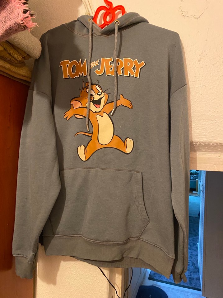 Erkekler için bol kesim, uzun kollu, gri renkli Tom ve Jerry baskılı sweatshirt. Ön cebinde cepli, yumuşak ve sıcak kumaştan, günlük rahat stil için uygundur. 'TOMWERRY' yazılıdır.