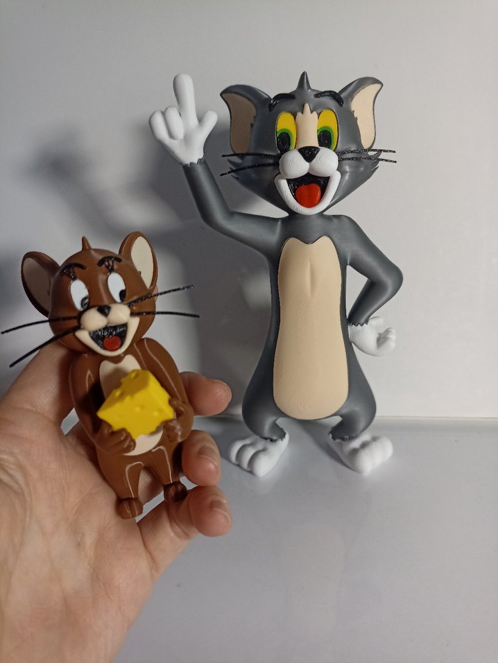 Gri Tom ve kahverengi Jerry figürlerinden oluşan, canlı renkli ve hareketli pozlara sahip set.