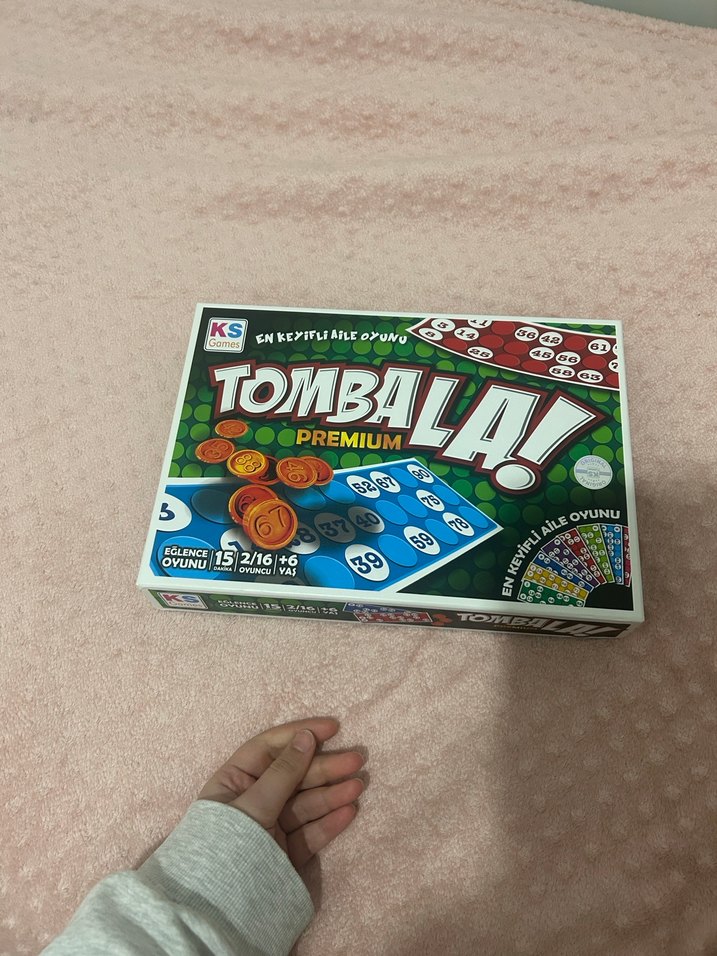 Tombala Premium, 16 kişiye kadar oynanabilen renkli ve eğlenceli bir aile oyunudur. 15 oyun kartı ve sayılı pullar içerir. Kenarı yırtık ve torbasız