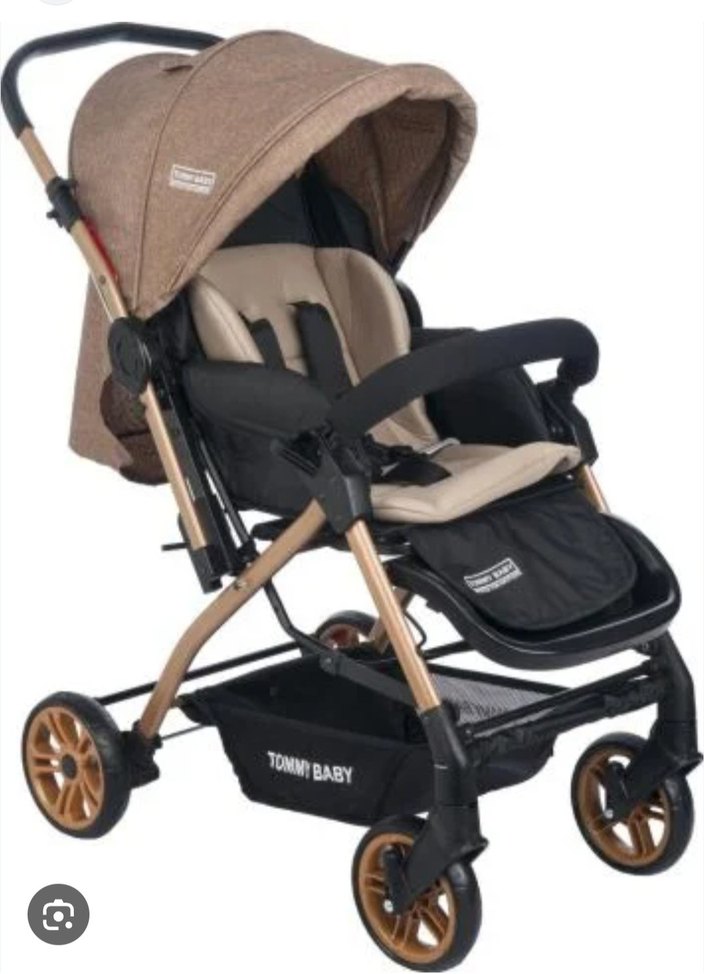 Tommy Baby bej renklerde, rahat oturma alanı ve sağlam yapıya sahip bebek arabasıdır. Güneşlik ve saklama sepeti bulunur. en fazla 3 kez kulanildi yeni temiz