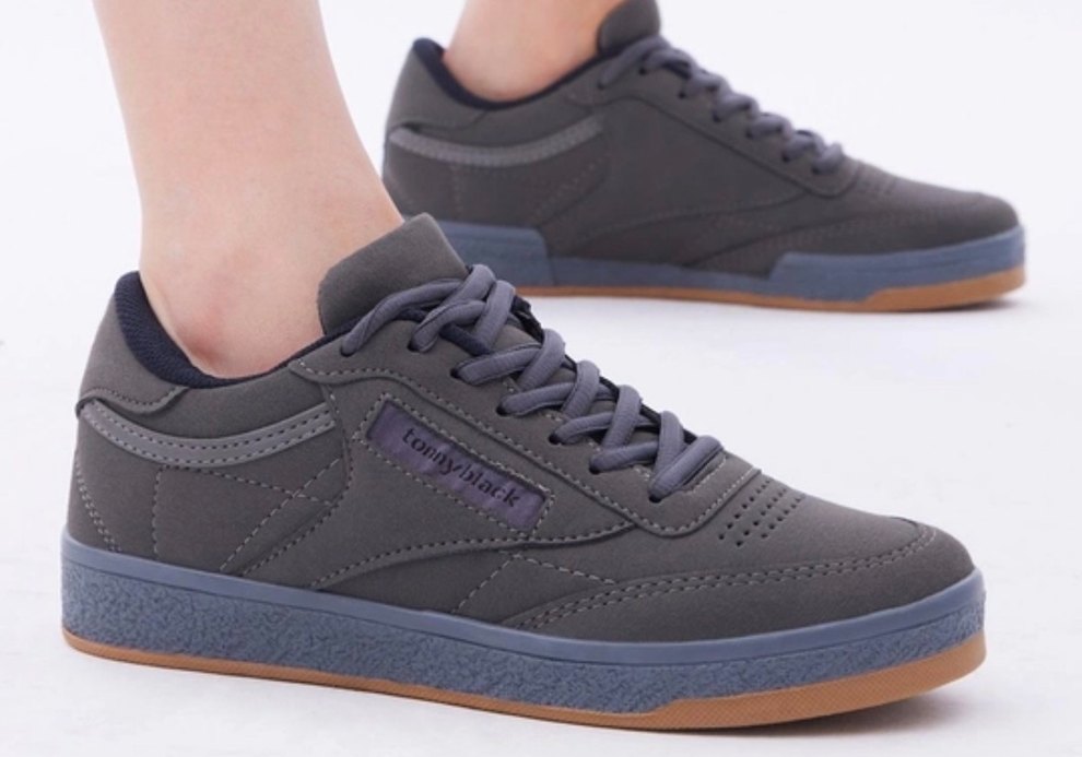 Tommy Black spor ayakkabılar, gri kauçuk taban ve velcro kapama ile sokak stili ve spor için uygundur.