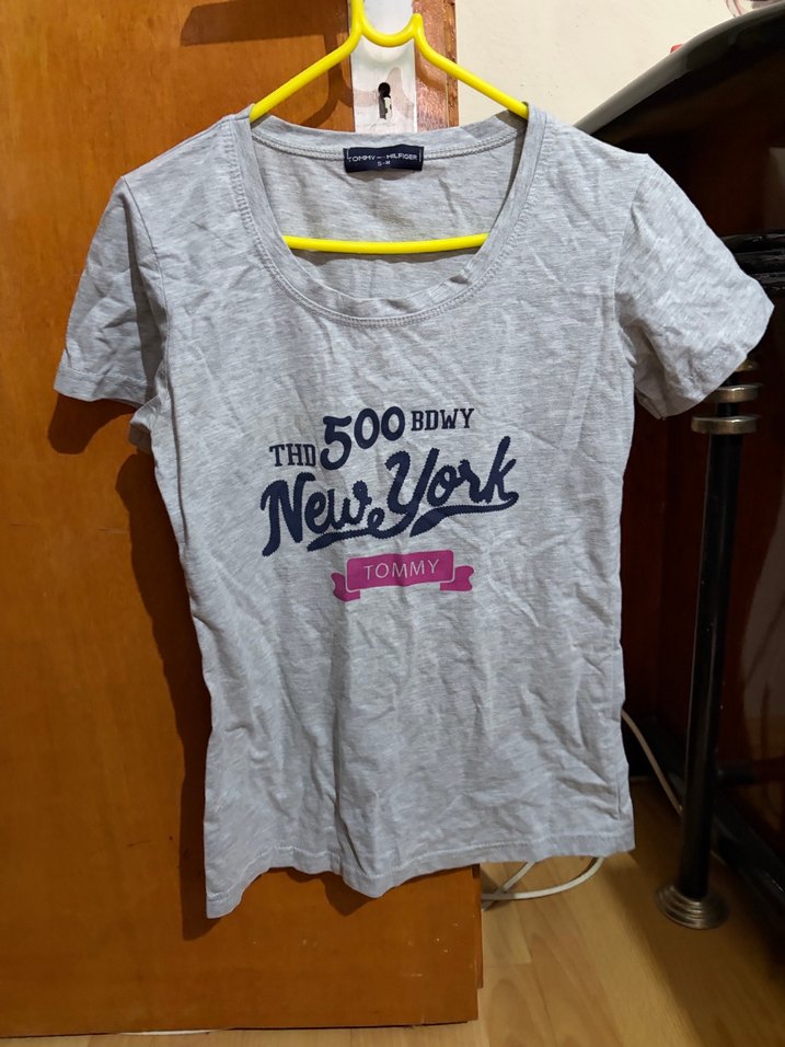 Tommy marka pamuklu tişört, kısa kollu ve yuvarlak yakalıdır. Önde New York baskısı bulunan rahat kesim, günlük sokak stiline uygundur.