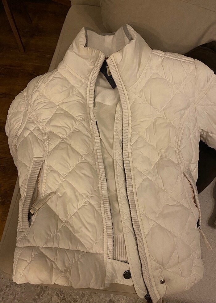 Beyaz small mont Orjinaldir 1 sezon giyildi Dolapta durmaktan hafif sararmış Kuru temizlemeye ihtiyacı var Modası geçmez tarz bir monttur