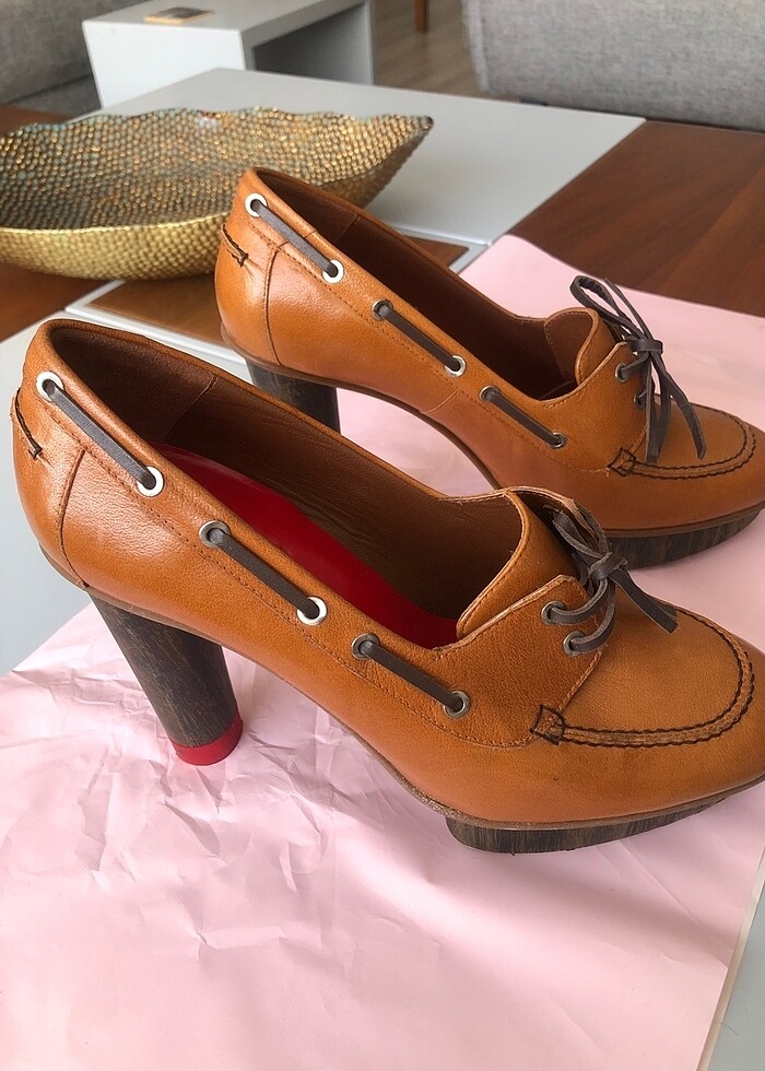 Platform topuk az kullanılmış 39 numara uyumlu ayakkabı. Bir tekinin ucunda minik çizik vardır, fotoğrafladım ve fiyata yansıttım .