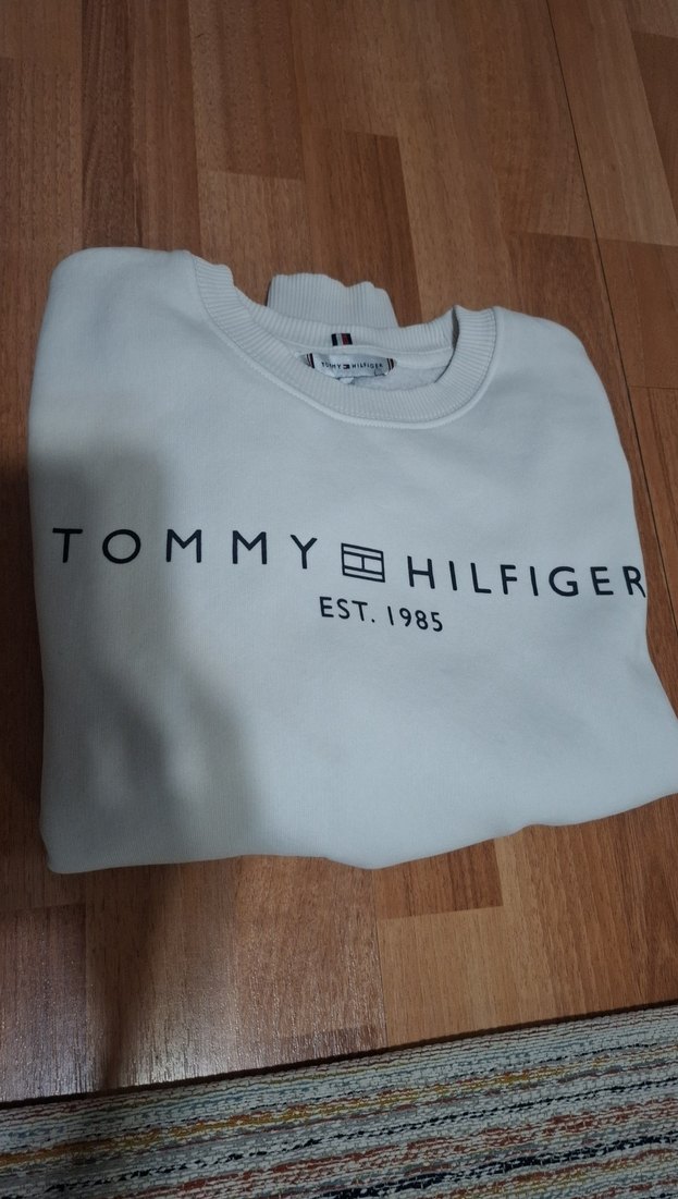 Tommy Hilfiger marka, yuvarlak yaka ve uzun kollu, baskılı logo ve yazılı beyaz pamuk sweatshirt. Rahat kesim, günlük sokak stili için uygundur. 3 kere giyildi,orijinal.