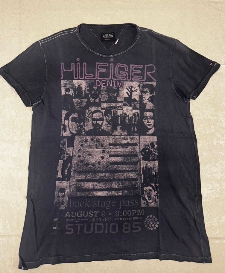 Ön kısmında "Backstage Pass - Studio 85" temalı, yüksek kaliteli grafik baskı mevcuttur. • Antrasit / Füme rengindedir. • Yaka kısmında ikonik beyaz dikiş detayı ve Hilfiger Denim etiketi yer almaktadır. • %100 Pamuk, yumuşak dokulu ve konforlu bir kesime sahiptir. • Herhangi bir deformasyonu veya lekesi bulunmamaktadır. Ölçü: iki koltuk altı arası 54 cm, omuzdan itibaren boy 71 cm dir.