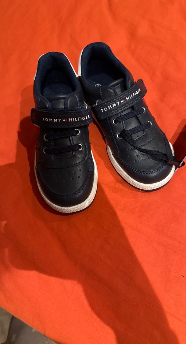 Tommy Hilfiger erkek çocuklar için koyu mavi renkli, baskılı ve cırt cırtlı sneaker. Kauçuk tabanlı, sokak stili ve rahat günlük kullanım için uygun.