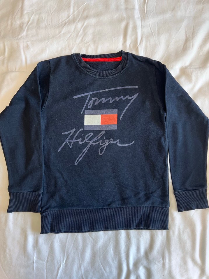 Uzun kollu, bisiklet yaka, yumuşak örme kumaştan yapılmış koyu mavi Tommy Hilfiger çocuk sweatshirt, rahat kesim ve baskılı logo detayına sahiptir.