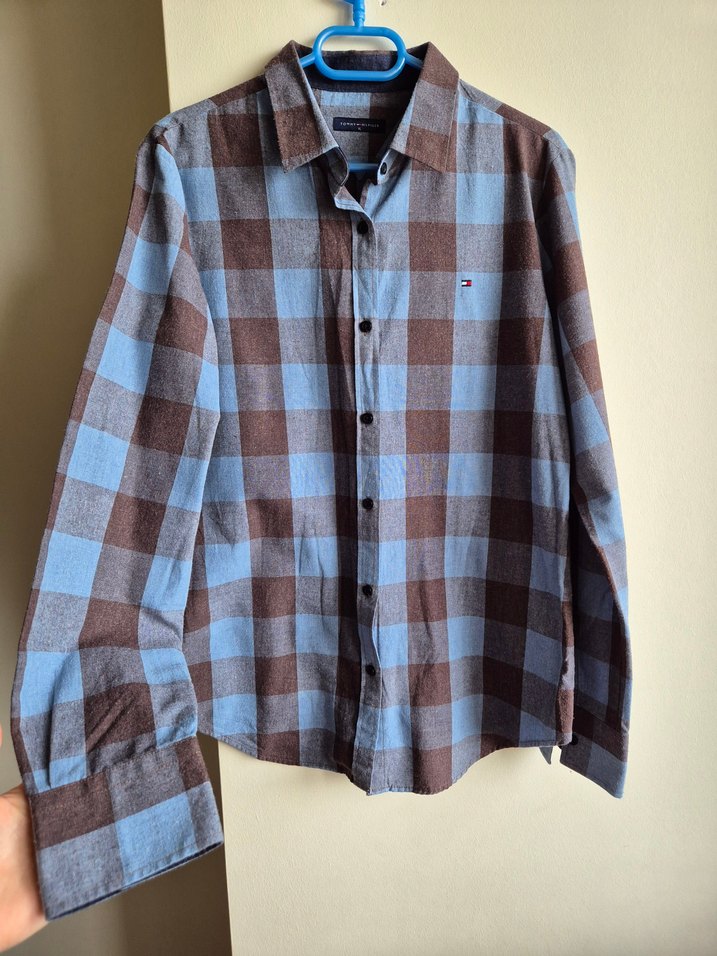 tommy hilfiger erkek gömlek xl beden ama kalibi kucuktur L beden isaretliyorum. boy 69 cm iki koltuk arasi 50 cm. kusuru yoktur.