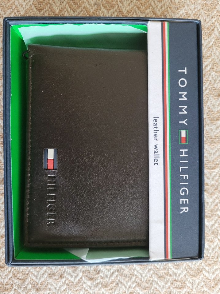 Tommy Hilfiger markalı, sıfır ürün,koyu kahverengi deri cüzdan. Resimlerde göründüğü gibidir.