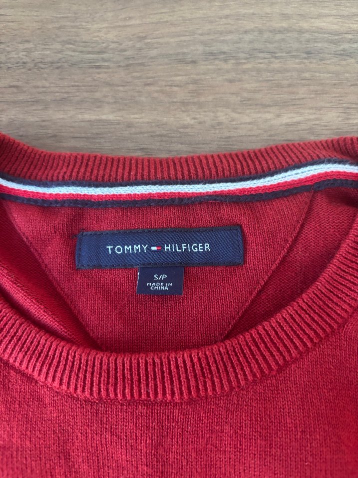 Tommy Hilfiger erkek kırmızı triko kazak, fitted kesim, yuvarlak yaka ve uzun kolludur. Yumuşak sentetik kumaştan üretilmiş, streetwear tarzına uygundur.