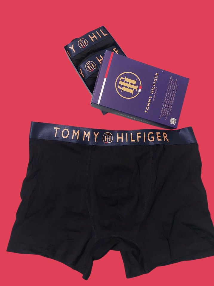 Tommy Hilfiger markalı, baskılı siyah erkek boxer. Vücuda oturan kesim ve rahat kullanım için normal boyda.