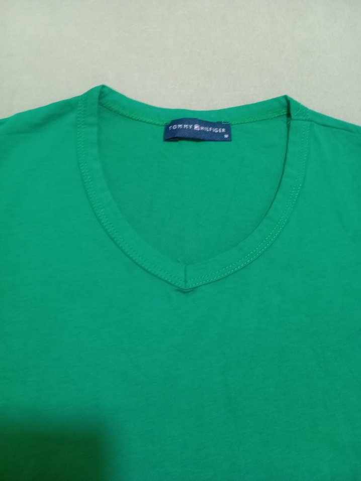 Tommy Hilfiger markalı erkek tişört, canlı yeşil renkte, V yaka ve bol kesimlidir. Normal boyuyla rahat bir günlük stil sunar.