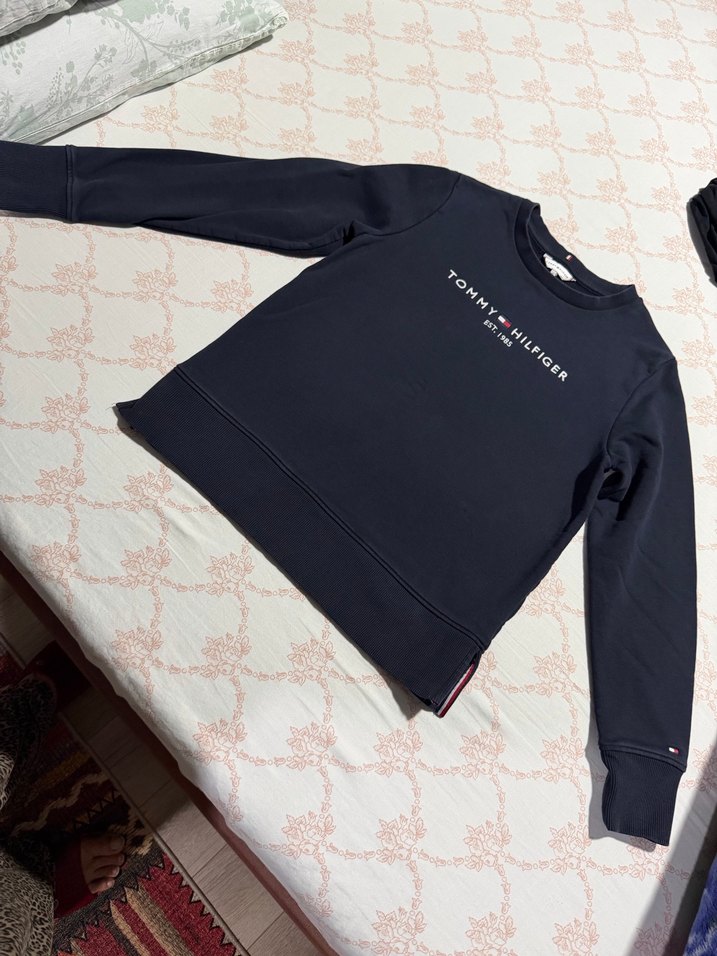 Tommy Hilfiger markalı, uzun kollu ve yuvarlak yakalı sweatshirt. Yumuşak ve sıcak kumaştan, önünde baskılı logo ile günlük sokak stiline uygun.