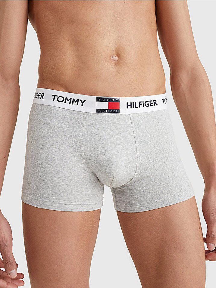 Tommy Hilfiger marka, gri renkte, normal boyda ve fitted kesimde erkek boxer. Logolu bel bandı ile konforlu kullanım sağlar.