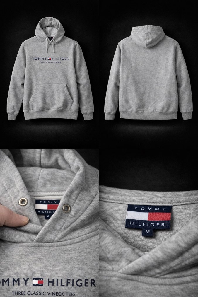 Tommy Hilfiger gri sweatshirt, yuvarlak yaka ve uzun kolludur. Göğüste baskılı logo ve yakada düğme detayı bulunur. Yumuşak ve rahat kumaştan yapılmıştır.
