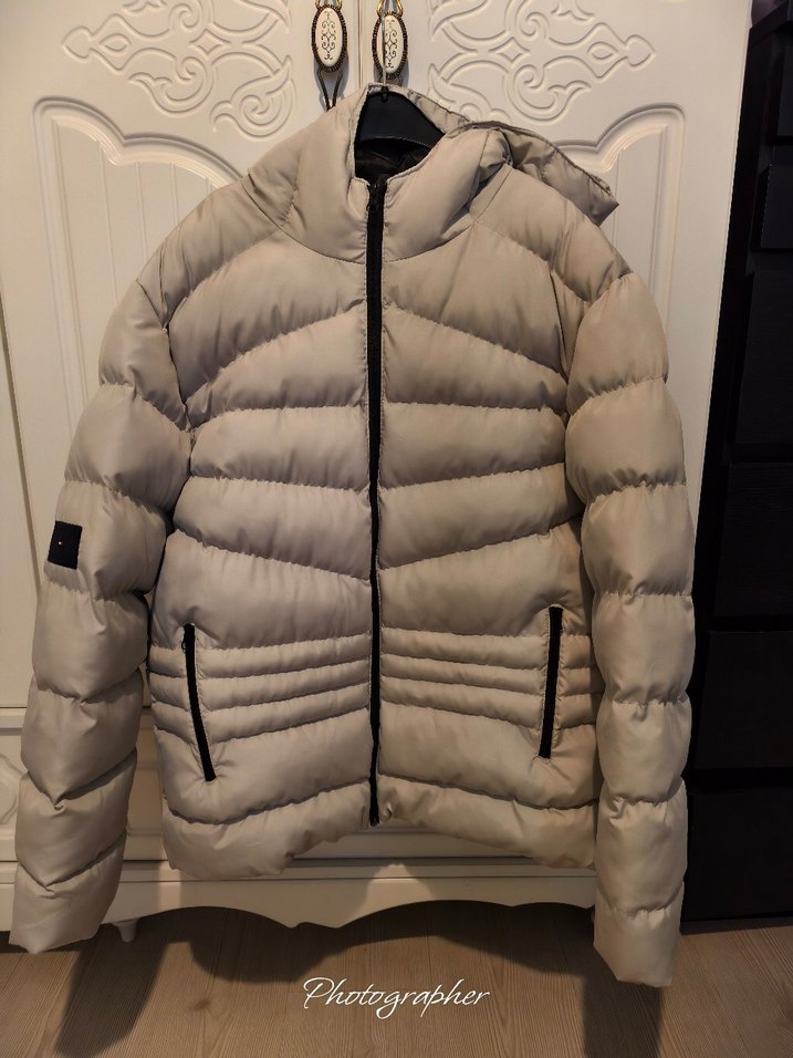 Gri renkli, fermuarlı erkek mont. Normal uzunlukta, uzun kolludur 2 defa giyilmistir sorunsuz sıfır ayarındadır